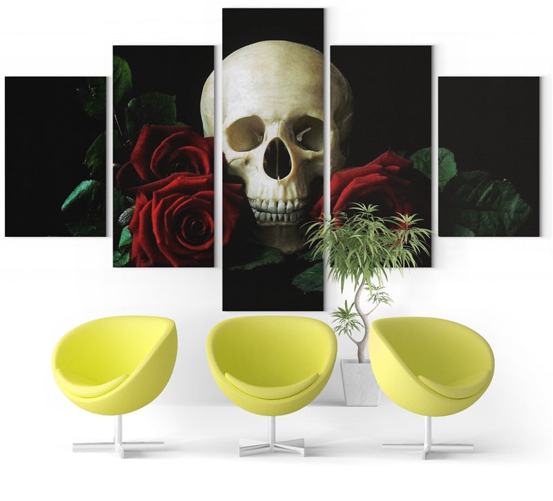Decore o seu covil com esta fantástica pintura de crânios com flores! "Aquele que fode a rosa casa com o espinho". Adote-o para uma decoração maligna.
