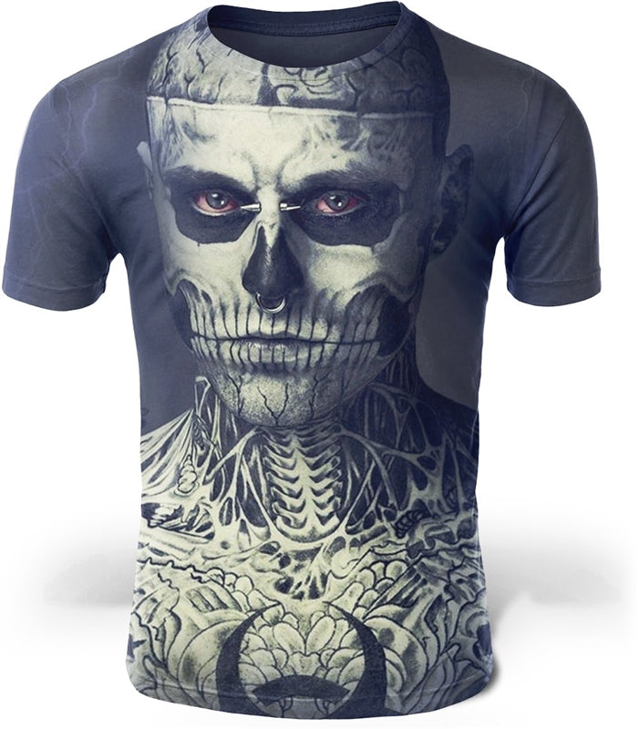 Para Rick Genest, é Halloween todos os dias! Um olhar profundo, escuro e um sorriso infinito e arrepiante é o que inspira esta fantástica T-Shirt Zombie Boy.